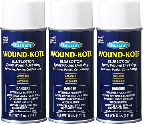 Farnam 3 Pack of Wound-Kote, 5 Ounces each, Blue Lotion Spray Wound Dressing for Horses Ponies Cattle and Dogs