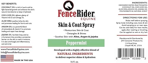Fence Rider Skin & Coat Spray, Blend of Premium Natural Ingredients to Soothe Skin and Shine Coat, (Peppermint). with Gentle Spray-Mist Technology.