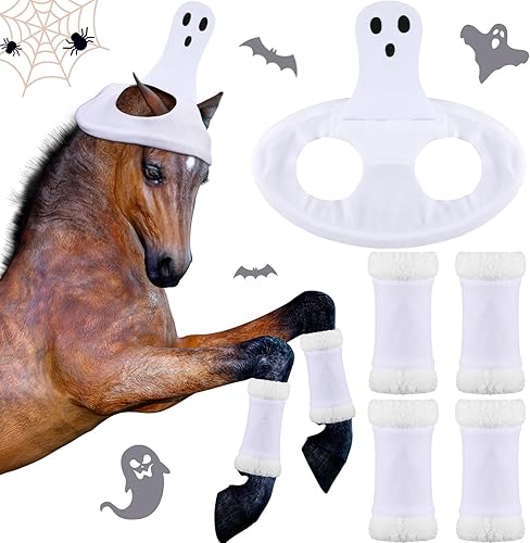 5 Pcs Halloween Costumes for Horses Spooky Ghost Hats Self Adhesive Leg Wraps with Hook and Loop for Holiday Gothic Horse Costume Accessories