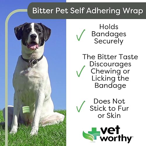 Vet Worthy Bitter Self-Adhering Wrap - Bitter Bandage Wrap for Dogs - No Lick Bandage for Dogs & Cats - Dog Self Adhesive Bandage Wrap for Pet Wound Care - Cat & Dog Bandage Protector - 2" (5yd)
