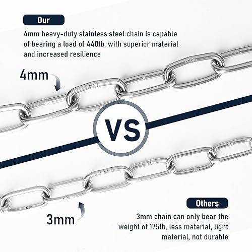Gate Chain Lock with 20 Inch (4mm) Stainless Steel Gate Link Chain Lock with Carabiners Chain Link Gate Latches for Outdoor Fences, Pet Cages, Dog Horse Goat Cow Corral Supplies