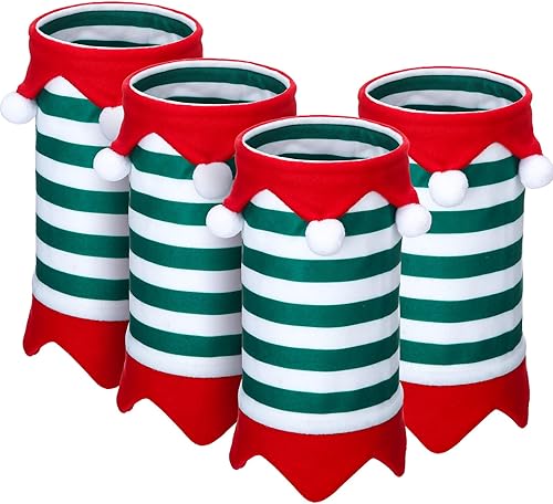 Mixweer Horse Christmas Tack Horse Leg Wraps Faux Fur Polyester Standing Wraps for Horses Leg Loose and Comfortable for Christmas Parades, Set of 4(Stripe)