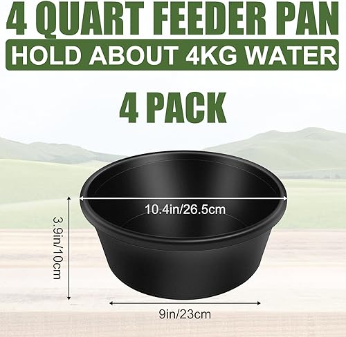 4pcs Rubber Feeder Pan - 4 Quart Durable Rubber Feed Pan, Resistant Animal Feed Bowl, Suitable for Horses, Goats, Chicken, Cats, Dogs, Dust Bath Container