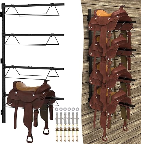 4 Tier Saddle Rack Wall Mount, Horse Saddle Rack for English & Western Saddles, Tack Storage, Pad, Accessories etc for Horses