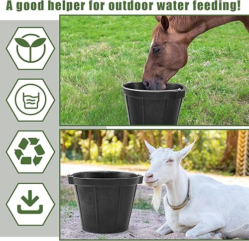 Sadnyy 2 Pcs Rubber Feeder Bucket, 8 Quart 2 Gallon Rubber Horse Feed Bucket with Handle Large Utility Horse Feed Pan Dog Bowl Horse Feeder for Goats Horses Animal Feeding, 10.6 x 8.6 Inches, black