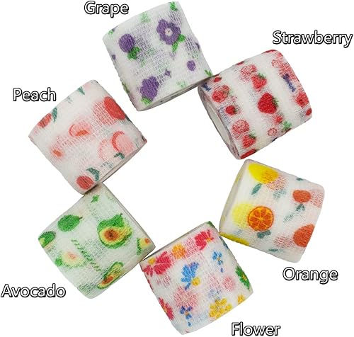 Vet Tape wrap, wrap Bandage 2 inch 6 Rolls,Adhesive wrap Bandage for The Person or The Pets (cat,Dogs,Horse and Other Animal) who was injure or Have Wounds (Fruits 6pcs) Vukayo001