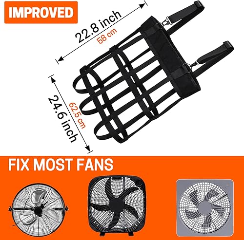 Box Fan Bag,Classic Horse Stall Fan Holder for 20"×20" Box Fan, Hanging Web Box Fan Carrier for Horse Stall, Barn, or RV