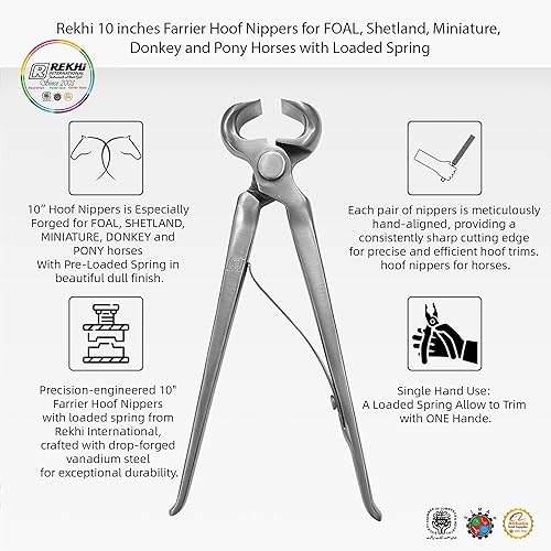 Rekhi 10 inches Farrier Hoof Nippers for FOAL, Shetland, Miniature, Donkey and Pony Horses with Loaded Spring, Horse nippers for Horses hoof Trimming
