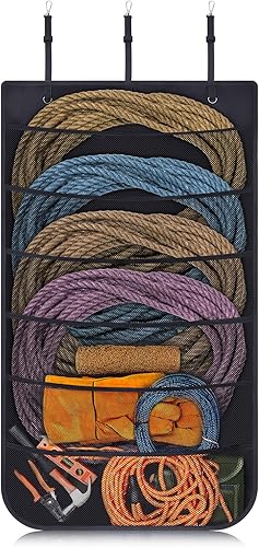 Horse Trailer Organizer Hanging Roping Rope Horse Trailer Door Caddy Organizer Grooming Bag Accessories Storage for Stable Door, Black, 42" x 24"