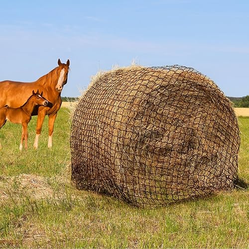 TONGMO 5x5 ft Round Bale Hay Net for Horses & Livestock - Slow Feeder Hay Nets with 2 inches Hole