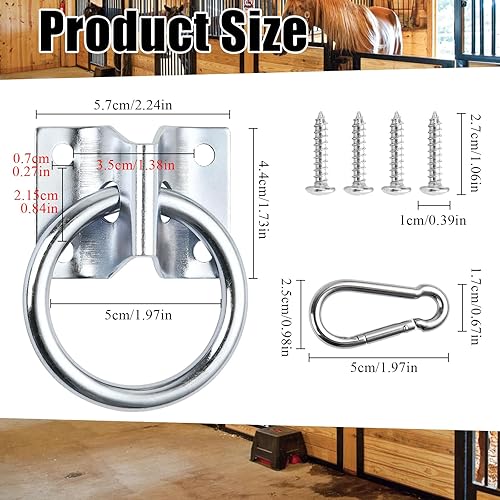 10 Pcs Cross Tie Ring for Horse, Horse Trailer Tie Ring with 10 Spring Snap Hook and 40 Screws, Horse Tie Down Ring Barn Supplies for for Horse Stall,Trailer, Barn, Racetrack, Horse Pasture