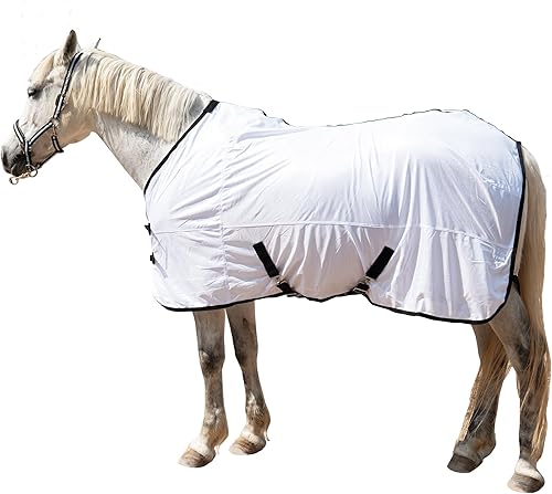 Horse Fly Sheet Equine Summer Sheets, Comfy Mesh Bug and Mosquito Protection Standard Neck - White 78"