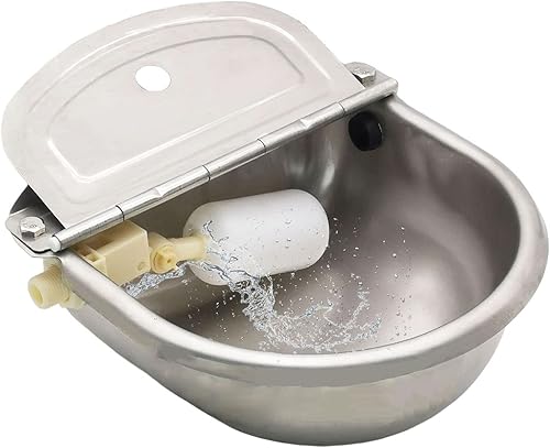 Fhiny Automatic Livestock Waterer Stainless Steel Cow Drinking Water Bowl with Float Valve Cattle Trough Farm Livestock Animals Tool for Cattle Cow Horse Goat Sheep Pig Pet Dog