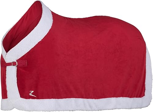 HORZE Santa Christmas Fleece Horse Cooler Blanket with Faux Fur - Red - 75 in