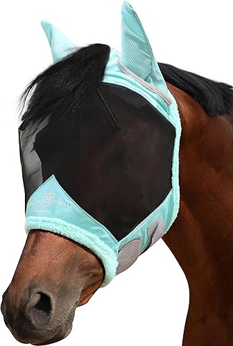 Harrison Howard Horse Fly Mask UV Protective Fine Mesh with Extra Wool Soft Touch on Skin Fly and UV Protection Summer Mint L
