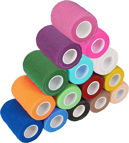 15 Pack 3 Inch x 5 Yards Self Adhesive Bandage Wrap, Non-Woven Bandage,Vet Wrap Breathable Elastic Self-Adherent Tape for Stretch Athletic, Sports, Wrist, Ankle (Mix)