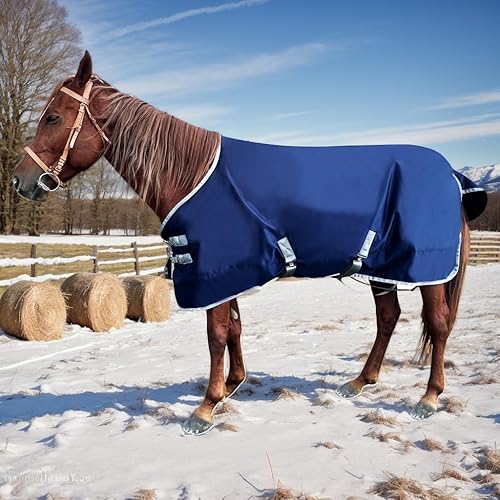 1200D Horse Blanket | Horse Turnout Blanket | Winter Horse Blanket for Real Horses (Navy Blue, 72'')