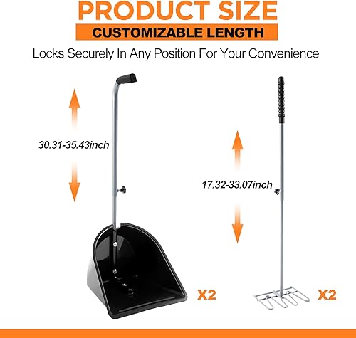 Maxdot 2 Sets Adjustable Manure Scoop Kit Manure Rake and Dustpan with Adjustable Handle Horse Poop Scooper for Horse Stall Cleaning, Garden Composting, Pet Waste Cleanup