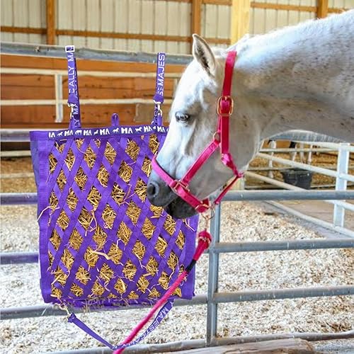 2Pcs Hanging Hay Feeder Bag - Durable Oxford Cloth with Metal Rings & Adjustable Strap, 19.7" x 17.7" x 6", for Horses, Goats, Cows, Alpacas - Slow Feeding Design Reduces Waste & Keeps Hay Dry