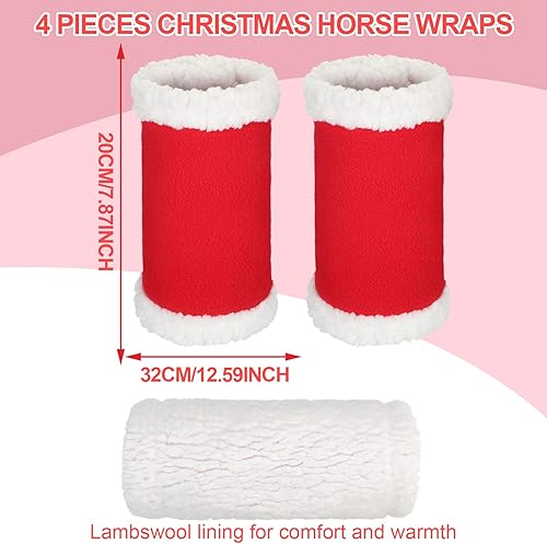Mixweer Horse Christmas Tack Horse Leg Wraps Faux Fur Polyester Standing Wraps for Horses Leg Loose and Comfortable for Christmas Parades, Set of 4(Red and White)