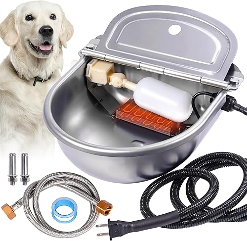 Heated Automatic Dog Water Bowl Dispenser Outdoor Pet Thermal-Bowl with Anti Chew Cord, Auto Filling Heated Waterer for Dog Cat Goat Horse Cattle Pig Chicken