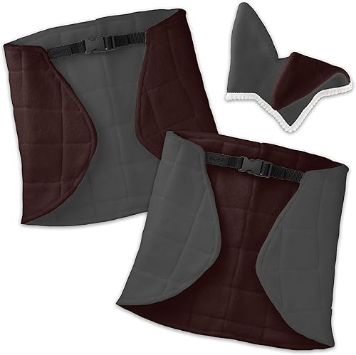 SKIPPI Reversible Blanket and Fly Cover - Grey and Brown, Two Tone Hobby Horse Blanket and Fly Ears, Fits Most Horses A3 and A4