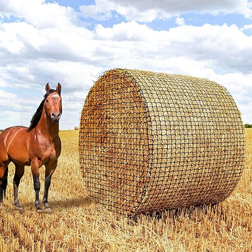 6x6ft Hay Nets for Horses: Round Bale Hay Net for Slow Feed - Heavy-Duty Polyester Ropes in A Tight 12-Strand Braid