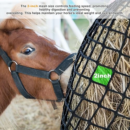 Extra Large Rectangular Hay Net for Horses Goats 1.5" Holes Slower Feed Hay Bag Nets Rectangle Size 7ft x 4ft