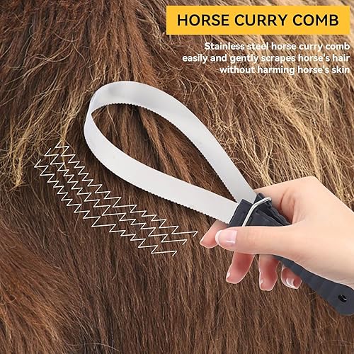 Stainless Steel Horse Curry Comb, Dual-Sided Shedding Blade with Stainless Steel Blade De-Shedding Tool Safety Horse Fur Scraper for Horse Hair Cleaning