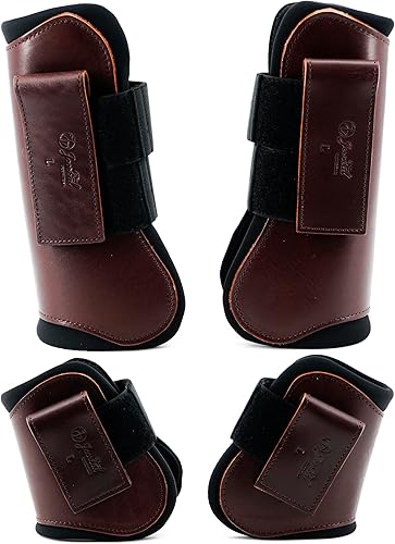 Jeereal Horse Tendon Brushing Boots Open Front & Fetlock Boot | Protective Gear and Training Equipment |Neoprene,Breathable Waterproof Fabric and Genuine Leather | 4 Set