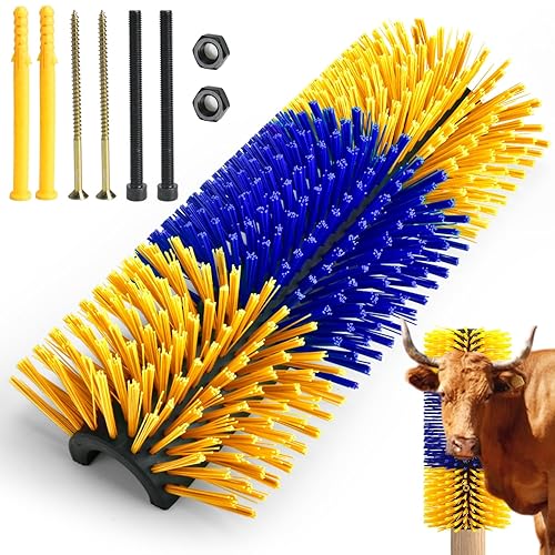 CONLI Livestock Scratching Brush with 4 Screws, Horse Brush with Plastic Bristles for Grooming, Cow Scratcher Goat Scratching Post, Full Massage Grooming Brushes for Horse Sheep Cattle Pig (Yellow)