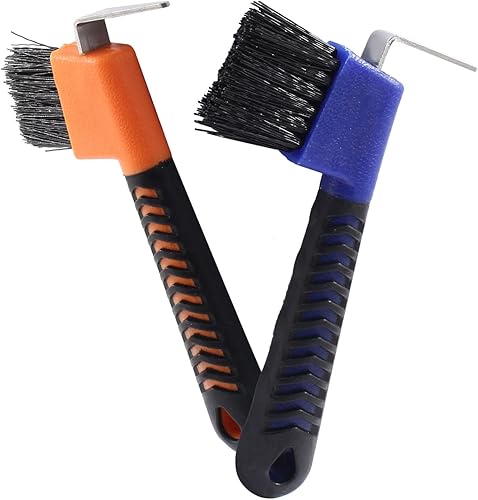 2 Pcs Horse Hoof Pick Brush with Soft Touch Rubber Handle Portable Hoofpick, Blue & Orange