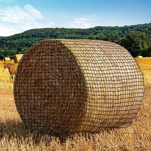 Large Round Bale Hay Net, 5 * 5 Feet Slow Feed Hay Net for Horses Livestocks Feeder with 5mm Holes, Thick Whole Bale Haynet for Round Bale 4x4/5x5 or Square Bale 3x3x8/4x4x8