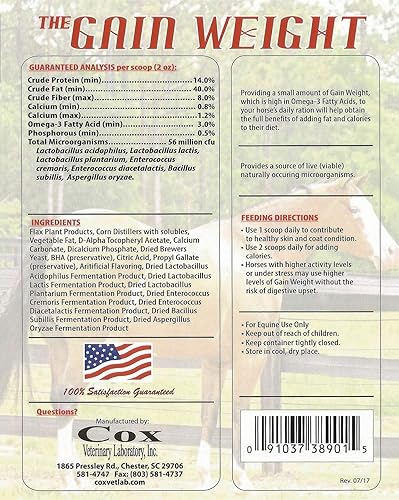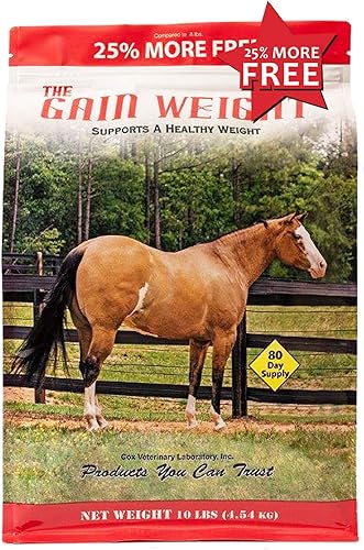 Gain Weight Supplement for Horses. Added Fat and Calories, Essential Nutrients and Amino Acids. Supports Healthy Growth, Skin, Coat and Muscle Tone. 10-Pound Refill Bag. 80-Day Supply.