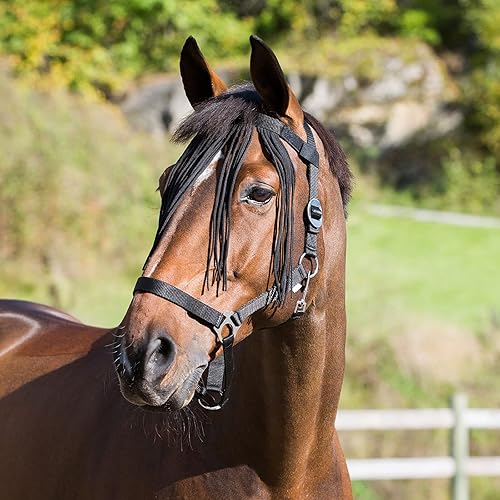 HORZE Lightweight Nylon Fringe Fly Veil - Easily Attaches to Halter - Peacoat Dark Blue - Cob