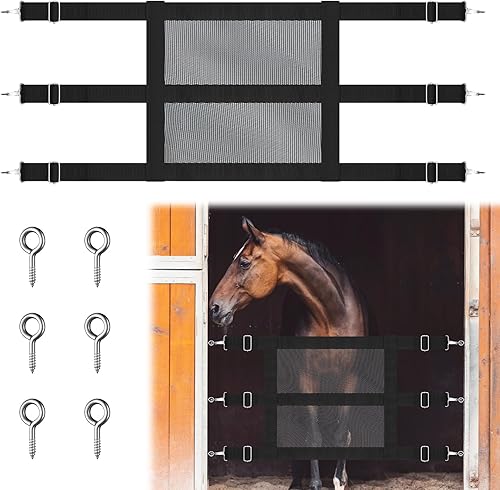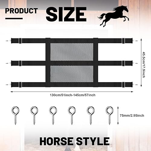 Nylon Stall Guards for Horses with Adjustable Straps and Sturdy Snap Hooks 57 x 18 Inch Mesh Doors for Horses Black Stall Gate with 6 Nails to Keep Horse Securely