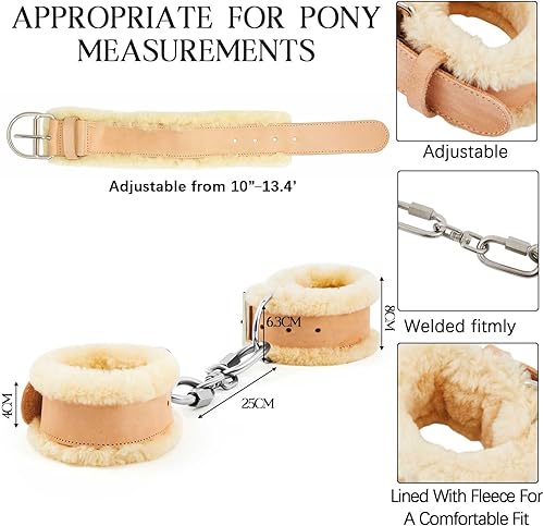 Leather Horse Hobbles with Fleece Lining - Heavy Duty Chain Restraints for Pony & Cows - Durable, Comfortable Animal Hobble for Training, Grazing, and Transport