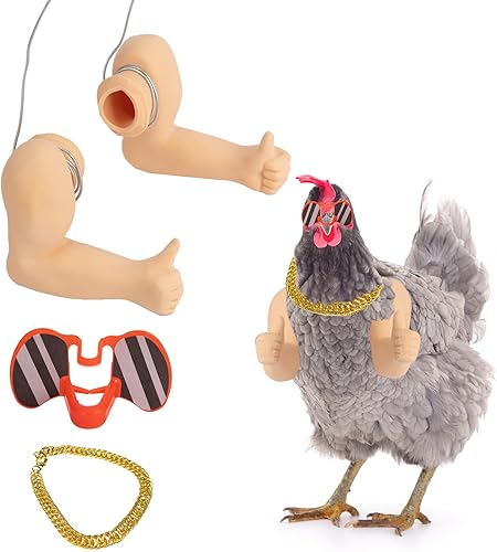 Extguds Thumb up Chicken Arms to Put on Chickens,a Funny Chicken Arm Toy with Peepers and Necklace,a Set of Pet Prank Role-Playing Costumes