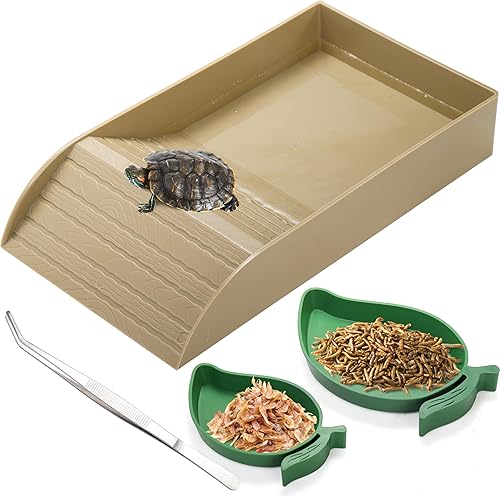 Hacaroa 4 Pcs Tortoise Water Dish with Ramp and Basking Platform, Mango Reptile Food Dish Turtle Water Bowl, Reptile Bathing Pool Amphibians Habitat Accessories for Lizard, Box Turtle, Horned Frog