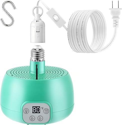 Enhon 1 Set Chicken Coop Heater with LED Lighting, Adjustable Temperature, Timer & Safety Features – 5 Ft Long Cable Chicken Coop Heating Lamp Perfect for Small Animals and Reptiles