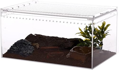 NANEEZOO Magnetic Acrylic Large Enclosure 2.5 Gallon 12 x 8 x 6 Inch Reptile Breeding Box Terrarium Cage for Insect Tarantulas Amphibians Caterpillars Snail Clear Acrylic Reptile Feeding Box
