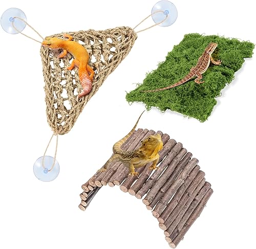 Bearded Dragon Tank Accessories, Reptile Hammock Natural Wood Plants Bridge, Reptile Tank Accessories for Snakes, Geckos, Lizards and Chameleons Hiding/Climbing