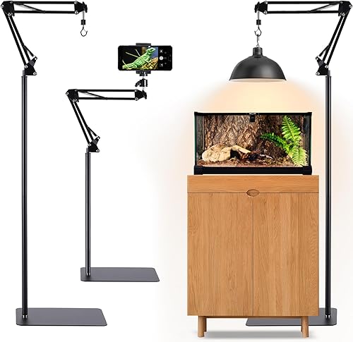 Metal Reptile Lamp Stand Tall Floor,Reptile Heat lamp Stand Adjustable with 360 °Swing Arm, Reptile Heating Lamp Stand Suitable for Different Types of Reptilee Lights.