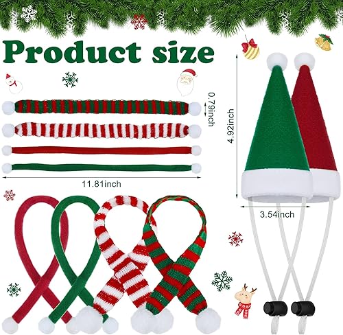 8 Pack Christmas Small Animal Costume Guinea Pig Santa Hat with Scarf for Chicken Rabbit Ferret Hamster Chinchilla Hedgehog Lizard Holiday Christmas Party Outfit