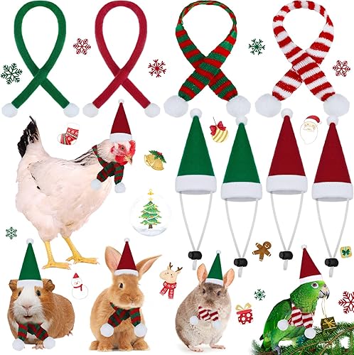 12pcs Christmas Pet Chicken Hat Scarf Set, Mini Santa Hat Adjustable Straps Animal Hat for Hen Duck Hamster Guinea Pig Parrot Christmas Cosplay Costume