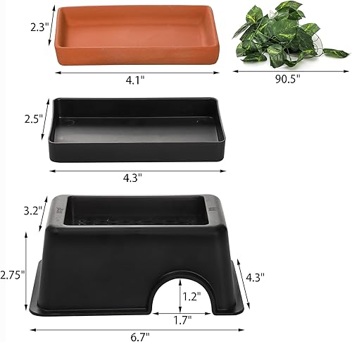 Suwimut 2 Pack Reptile Hide Box, Small Animal Hideout Plastic Hide Cave with Sink Humidifier, Pet Habitat Decor Hideaway Hut with Flexible Leaves for Lizard Gecko Snake Leopard Spider Turtle Amphibian