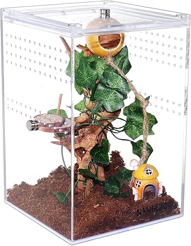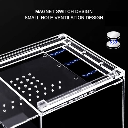 NANEEZOO Magnetic Acrylic Reptile Cage, 6"x6"x9" Tall Enclosure Transparent Reptile Breeding Box Terrarium Tank for Tarantula Scorpion Sling Isopods Invertebrates Insect Mantis
