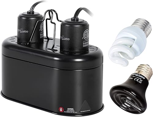 REPTI ZOO Dual Nano Dome Reptile Lamp Fixture Combo Pack Includes 5W Mini Fluorescent UVB Light Bulb & 35W Ceramic Heat Emitter Reptile Heat Lamp Bulb