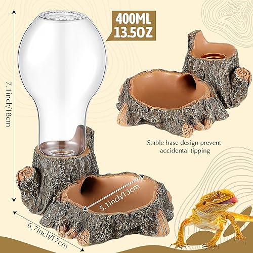 2 Pcs Automatic Reptile Water Dispenser 13.5 oz Large Bearded Dragon Water Bowl Reptile Dish Feeder for Terrarium Tank, Turtle, Geckos, Frog, Tortoise, Amphibians, Lizards