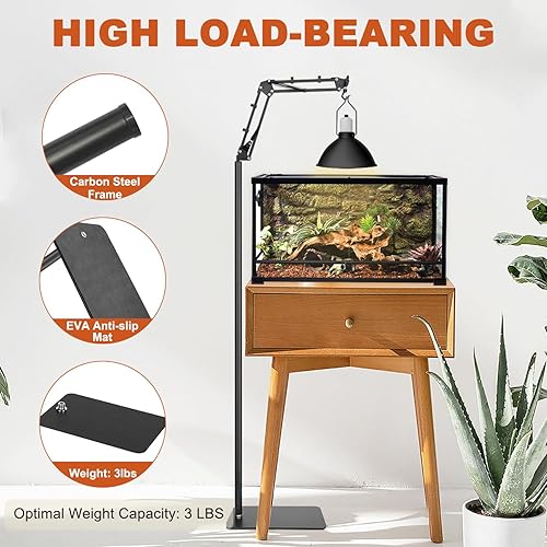 Reptile Heat Lamp Stand with 360° Adjustable Swing Arm, Adjustable Height (15.7inch to 72inch) Reptile Light Stand for Leopard Gecko Bearded Dragon Tortoises Turtle Snake Lizard and Chicks